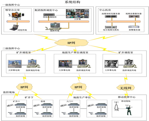 事故發(fā)生后,機(jī)關(guān)領(lǐng)導(dǎo)和煤礦各級(jí)領(lǐng)導(dǎo)可以在第一時(shí)間開啟指揮調(diào)度,利用依存的有線網(wǎng)絡(luò)或者無線監(jiān)控將事故現(xiàn)場(chǎng)的圖像上傳到指揮中,供領(lǐng)導(dǎo)快速?zèng)Q策,相關(guān)部門啟動(dòng)應(yīng)急程序,協(xié)助現(xiàn)場(chǎng)人員撤離,并且啟動(dòng)應(yīng)急預(yù)案進(jìn)行搶救,以防止和減輕人員傷亡,降低財(cái)產(chǎn)損失。另外,煤礦領(lǐng)導(dǎo)及相關(guān)政府部門可以依據(jù)事前、事中的錄像文件,對(duì)事故發(fā)生原因進(jìn)行排查,總結(jié)經(jīng)驗(yàn),通過電視廣播會(huì)議,對(duì)煤礦企業(yè)的在職職工進(jìn)行安全培訓(xùn),提高警惕。