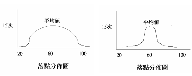 右邊這張圖的平均值也是60秒,其中大約也是有15通左右是60秒,雖然也有幾通電話短到20秒,也有幾通電話長到100秒,但大部分電話集中在50秒到70秒之間。