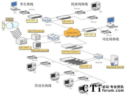 北京藍牙提供的12345政府熱線呼叫中心系統(tǒng)由呼叫中心主控系統(tǒng)、IVR語音導航系統(tǒng)、錄音系統(tǒng)、語音信箱系統(tǒng)、電話會議系統(tǒng)等多個模塊組成,將接入功能、導航功能、自動語音查詢功能、人工座席服務功能、熱線轉(zhuǎn)接功能、信息資料處理緊密聯(lián)系起來。用戶撥打熱線電話后,可以根據(jù)需要選擇人工服務、自動語音查詢、自動留言,并能夠在幾種服務中來回切換或轉(zhuǎn)接其它熱線電話;所記錄的資料可以分門別類的進行統(tǒng)計并形成報表,供相關部門進行檢索查閱;意見處理完畢,可由座席主動呼叫用戶,告知處理意見