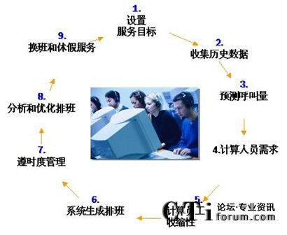 Impact 360 WFM提供一整套的集成排班管理應(yīng)用程序,幫助呼叫中心在三個(gè)關(guān)鍵并且時(shí)常是沖突的要素之間作出優(yōu)化。他們是:客戶的滿意度、員工的的滿意度與穩(wěn)定性,以及運(yùn)營的成本。在排班管理過程中,WFM采用如下基本流程: