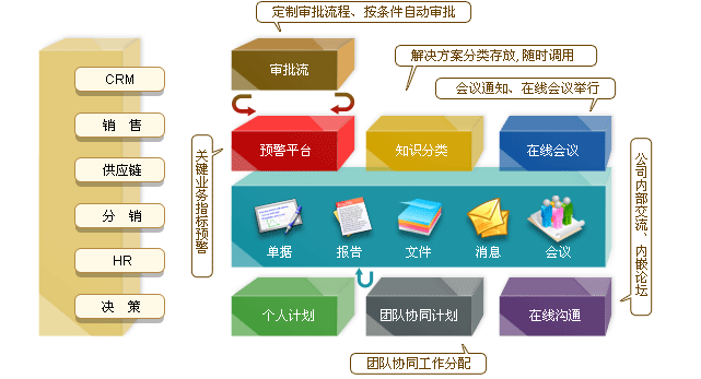 800APP-OA系統(tǒng)包含會議、在線溝通、審批流、預(yù)警平臺、知識庫、公司文化、個人計劃、團隊協(xié)同計劃8個功能。