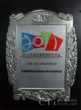 CTI論壇(ctiforum)12月20日消息(記者 張潔): 12月9日,以“模式創(chuàng)新帶動產(chǎn)業(yè)及應用轉(zhuǎn)型”為主題的“信息化領袖峰會暨商用軟件評選頒獎大會”在上海隆重舉行。本次大會分四個環(huán)節(jié)進行,其中最重要的環(huán)節(jié)莫過于揭曉“2011年度中國商用軟件評選”結(jié)果,作為全球領先的企業(yè)管理軟件供應商八百客(www.800app.com)成功斬獲2011年度中國商用軟件評選“在線CRM行業(yè)領先獎”。同時,八百客的三位企業(yè)用戶美國宣偉涂料公司的潘總、上海企盈投資管理有限公司的何總、華圖教育的王總分別獲得 “2011年度信息化貢獻人物獎”大獎。