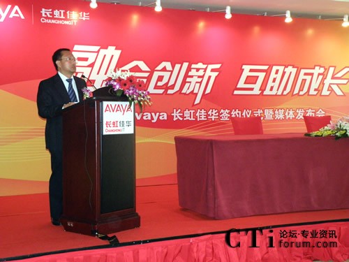 CTI論壇(ctiforum)08月13日消息: (記者 馮慧平)8月12日,Avaya公司與長虹佳華信息產品有限責任公司(以下簡稱“長虹佳華”)在北京聯(lián)合舉行“融合創(chuàng)新 互助成長”增值分銷協(xié)議簽約儀式暨新聞發(fā)布會,正式宣布長虹佳華成為其中國區(qū)的第二個增值分銷商。同時,雙方將在產品、技術、渠道、行業(yè)解決方案等方面建立更深層次的戰(zhàn)略合作關系。圖:Avaya中國公司總經理 王昀