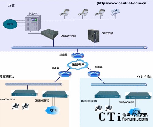 ,遠(yuǎn)程PSTN接CNG3000-XFXO設(shè)備,上述設(shè)備統(tǒng)一注冊到CMC軟交換平臺(tái)上。