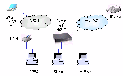 易傳通 網(wǎng)絡(luò)傳真服務(wù)器是基于網(wǎng)絡(luò)的瀏覽器/服務(wù)器與客戶端/服務(wù)器(B/S 與C/S)設(shè)計(jì)的,它采用了易傳通 專業(yè)的系統(tǒng)設(shè)計(jì),包括國(guó)家驗(yàn)證的專業(yè)傳真軟件系統(tǒng),配上專用的硬件,一體化設(shè)計(jì),只需接上網(wǎng)線、電話線,電源,即可使用,用戶無(wú)需添加任何其他設(shè)備,即可讓您享受網(wǎng)絡(luò)傳真帶來(lái)的方便、安全、快捷。