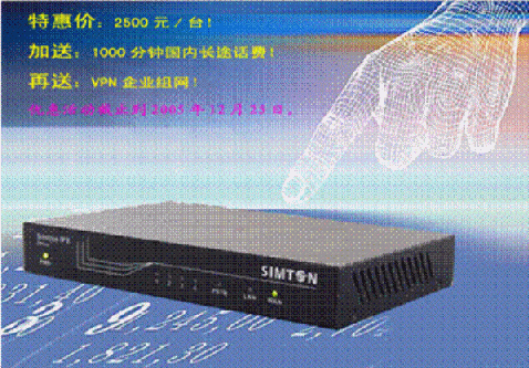優(yōu)惠價格:僅為RMB 2,500元/臺!奉送1,000分鐘國內(nèi)長途話費,再送VPN企業(yè)組網(wǎng)!