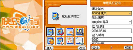 “快樂e行”預(yù)裝在手機(jī)中的存儲(chǔ)卡中,可直接安裝到手機(jī)的應(yīng)用菜單欄里,點(diǎn)擊圖標(biāo),就可以直接進(jìn)入首頁(yè)。圖形化的操作按鍵、簡(jiǎn)明的文字提示、順暢的操作流程,人性化的設(shè)計(jì)讓機(jī)票預(yù)訂變得不再麻煩。
