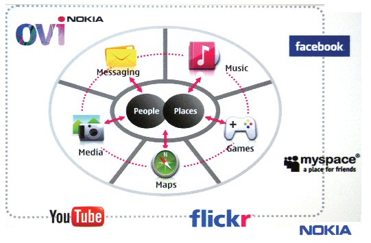 圍繞基于位置的社區(qū)服務(wù)(Social Location)而建立,是Ovi商店的一大特色;谖恢玫纳鐓^(qū)服務(wù),意味著這種服務(wù)是建立在諸如“你在哪兒”、