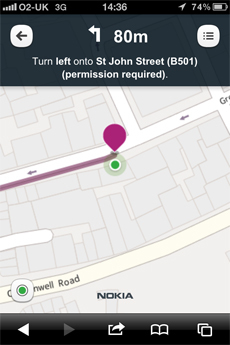 諾基亞地圖移動網(wǎng)站目前將會向所有設(shè)備的瀏覽器開放其Turn-by-turn步行語音導(dǎo)航服務(wù),其中包括iPhone。新浪科技