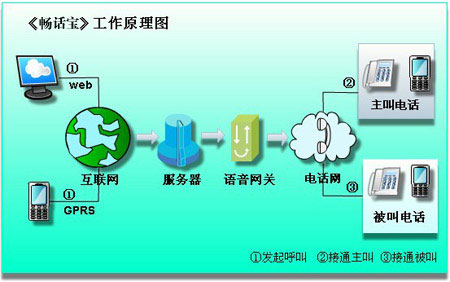 具體來講就是在手機(jī)里安裝“暢話寶”應(yīng)用軟件(在計(jì)算機(jī)桌面提供web客戶端),該軟件帶有通信錄和觸發(fā)GPRS的功能,可以通過無線互聯(lián)網(wǎng)將電話號碼發(fā)送到平臺,通過PSTN發(fā)起通話(2方或多方)。這個手機(jī)客戶端軟件,可無縫對接到固網(wǎng)增值業(yè)務(wù)平臺上(多方通信平臺)?蛻舳塑浖陨頂y帶有通信錄功能,調(diào)用方便。部分機(jī)型可調(diào)用手機(jī)本身的通信錄。