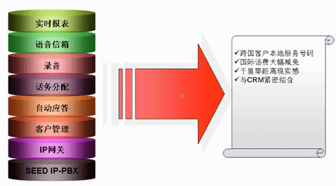 降低呼叫成本、提高服務(wù)質(zhì)量:ITG IP-Call Center系統(tǒng)可以幫助企業(yè)架設(shè)一個分布式的呼叫中心,提高企業(yè)對客戶的服務(wù)質(zhì)量。系統(tǒng)可以將呼入呼叫中心的客戶,轉(zhuǎn)接到指定的呼叫中心。企業(yè)可以降低呼叫中心的成本,IP-PBX系統(tǒng)的電話錄音、語音信箱等功能更是提高了呼叫中心的服務(wù)質(zhì)量。