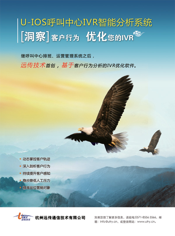 杭州遠傳通信技術(shù)有限公司是國家高新技術(shù)企業(yè)、雙軟企業(yè),具備軟件成熟度CMMI 3級資質(zhì),是專業(yè)的客戶服務(wù)管理軟件及咨詢服務(wù)提供商。公司以“追求卓越”和“客戶滿意”為目標,致力于呼叫中心、營業(yè)廳等客戶服務(wù)渠道的管理提升和信息化。憑借著公司細致周到的服務(wù),扎實穩(wěn)健的技術(shù)實力,公司在電信、金融、保險、旅游、航空、電力、互聯(lián)網(wǎng)及電子商務(wù)等行業(yè)領(lǐng)域擁有著眾多的成功案例,獲得了客戶的廣泛贊譽。