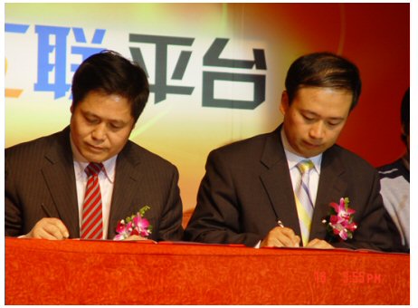中寬網(wǎng)信科技(北京)有限公司副總裁余輝和阿里軟件現(xiàn)場(chǎng)簽約