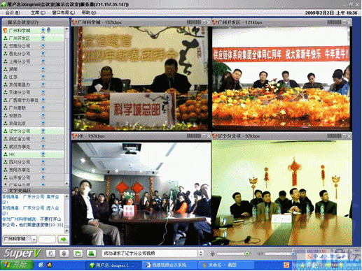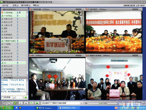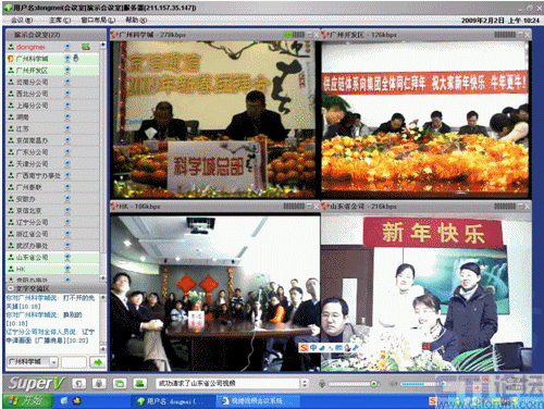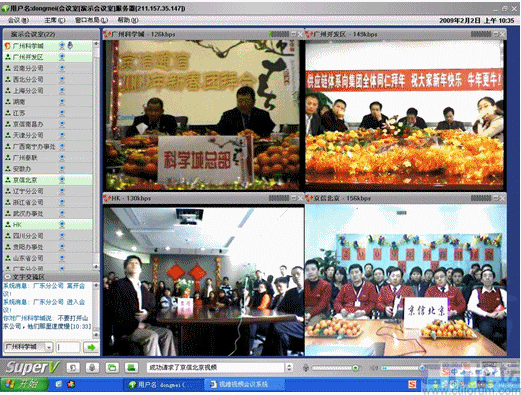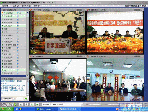 春節(jié)是中華民族的傳統(tǒng)的節(jié)日,尤其是跨國企業(yè)集團(tuán),身在海外的游子們,這一刻多么期待與在國內(nèi)的親人、朋友、以及同事網(wǎng)絡(luò)“面對面”的過春節(jié);因此,一些企業(yè)用視維視頻會(huì)議舉辦了別開生面的視頻拜年會(huì)。其中京信通信公司視頻年會(huì)尤為精彩,廣州科學(xué)城的主會(huì)場、廣州開發(fā)區(qū)、香港、北京、上海、西北分公司、武漢等20多個(gè)分公司通過視維視頻會(huì)議互拜大年,通過網(wǎng)絡(luò)視頻,遠(yuǎn)隔千里一樣可以“面對面”的送上新春祝福。如下圖: