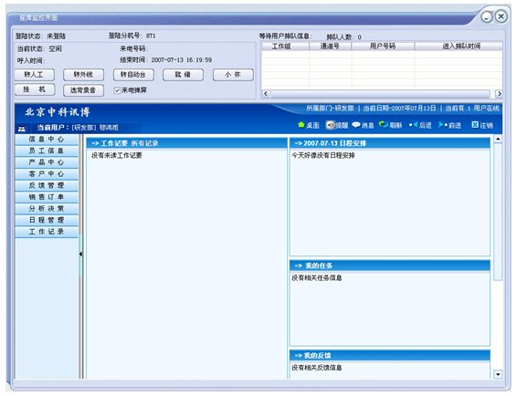 多種排隊機制,所有來電排隊信息都有顯示,提供對來電上移、下移、 移到最前或轉(zhuǎn)自動臺處理等多種可選擇的排隊功能,來電可根據(jù)服務(wù)要求,選擇不同的服務(wù)部門及人員,系統(tǒng)都做了優(yōu)化處理.