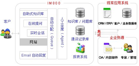 IM800是首家提出并實現(xiàn) “ 網(wǎng)上服務3.0 ” 思想的新一代綜合網(wǎng)上客戶服務和支持系統(tǒng),包括各種豐富的“自助服務” 和 “人工服務” 產(chǎn)品模塊:
