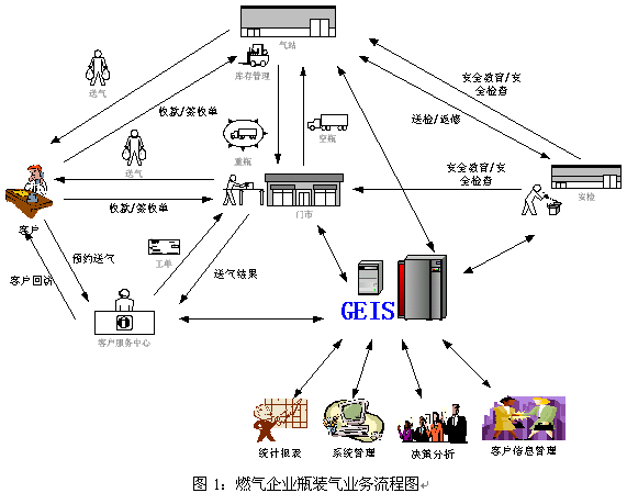 GEIS燃?xì)膺\(yùn)營(yíng)管理信息系統(tǒng)的應(yīng)用是企業(yè)的長(zhǎng)期發(fā)展的驅(qū)動(dòng)力,它是一套以客戶(hù)服務(wù)接觸中心為龍頭、以運(yùn)營(yíng)生產(chǎn)流程管理為龍身、以經(jīng)營(yíng)分析為龍尾的閉環(huán)信息處理系統(tǒng)。它由客戶(hù)服務(wù)中心子系統(tǒng)、門(mén)市業(yè)務(wù)子系統(tǒng)、氣站管理子系統(tǒng)、安全搶修平臺(tái)和管理與集成模塊組成。實(shí)踐的事實(shí)告訴我們,它起到保持客戶(hù)忠誠(chéng)度、提升企業(yè)品牌影響力、提高業(yè)務(wù)運(yùn)作效率、加快業(yè)務(wù)經(jīng)營(yíng)決策和促進(jìn)企業(yè)持續(xù)發(fā)展的作用。