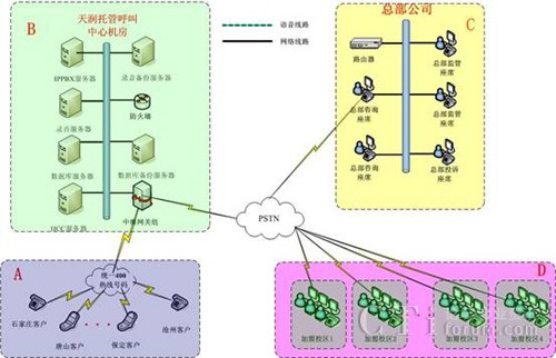 - 總部部署電腦座席,各加盟校區(qū)一般部署電話座席,電話轉(zhuǎn)接可以通過按鍵直接完成。