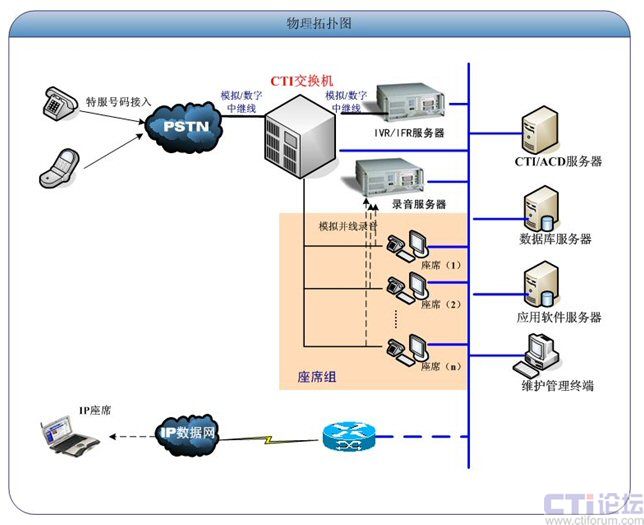 針對中大型呼叫中心項(xiàng)目的建設(shè)需求:支持大話務(wù)量呼叫、平臺(tái)靈活可靠性,可根據(jù)業(yè)務(wù)進(jìn)行靈活定制等特點(diǎn),simperfect推薦采用BasicCall呼叫中心中間件來構(gòu)建中大型的呼叫中心項(xiàng)目,可根據(jù)項(xiàng)目需求靈活選擇硬件交換機(jī)、IVR和錄音的組網(wǎng)方案。CTI論壇編輯