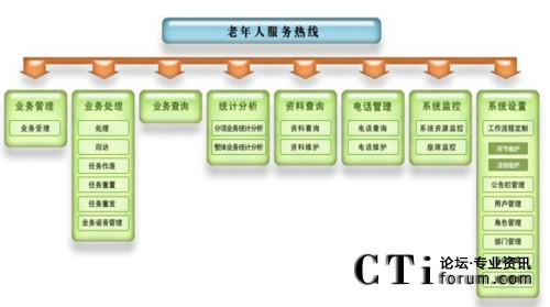 老年人服務熱線系統(tǒng)是為老年人提供援助服務的電話呼叫平臺,利用統(tǒng)一的特服號碼接入,實現(xiàn)統(tǒng)一服務流程和服務標準,服務內(nèi)容包括咨詢服務、求助報警服務、預定服務(預定生活服務、新聞送達、導引服務)、老年人定位導向服務、語音讀報服務等等。老年人服務熱線系統(tǒng)將通過呼叫中心、手機短信息等多種接入手段相結合的方式向廣大老年人提供7×24小時服務。即:工作時間實現(xiàn)人工座席及自動語音受理;非工作時間實現(xiàn)自動語音受理及值班座席受理。CTI論壇編輯