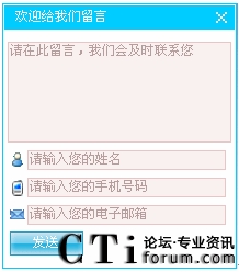 17.網(wǎng)站留言:網(wǎng)站留言是用于在CSR2000用戶的網(wǎng)站頁面上添加一個窗口,通過這個窗口,網(wǎng)站的訪問者可以輸入自己的聯(lián)系方式與需求情況,然后由CSR2000系統(tǒng)將信息傳遞給座席,如下圖:
