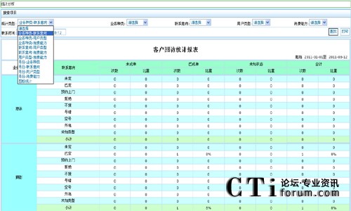 報表-回訪統(tǒng)計-業(yè)務種類-聯(lián)系意向: