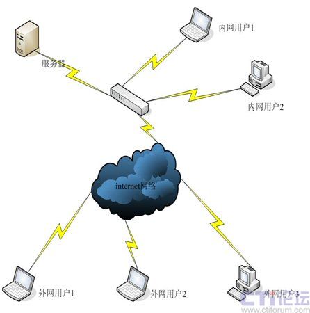 由于視頻會議系統(tǒng)服務器放在總部內(nèi)網(wǎng),通過端口影射,內(nèi)網(wǎng)用戶用內(nèi)網(wǎng)服務器地址登陸,外網(wǎng)用戶通過外網(wǎng)IP登陸即可,實現(xiàn)內(nèi)外網(wǎng)互聯(lián)。