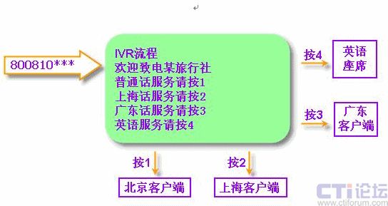 當客戶撥打電話進入SA800系統(tǒng)平臺的呼叫中心。通過IVR導航,可隨意打到各地的客戶端,再通過客戶端進行更加細致的分類。并且,每個客戶端都可以互相轉(zhuǎn)接。IVR流程可以無限下拉菜單。