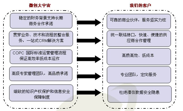 Chain Management概念,通過科學(xué)整合多渠道通信方式幫助客戶優(yōu)化商業(yè)流程、擴(kuò)大銷售額、降低成本、提升客戶滿意度,以一項(xiàng)專利技術(shù)成功運(yùn)用于世界500強(qiáng)企業(yè)客戶。