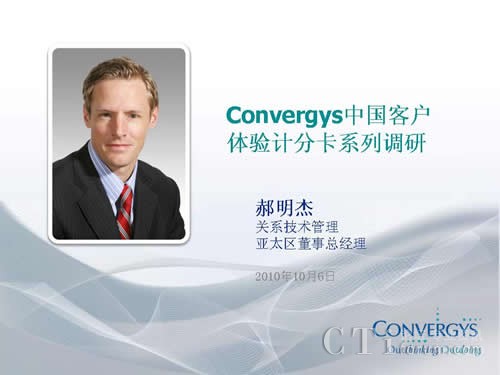 CTI論壇(ctiforum)12月16日消息(記者 楊毅):關(guān)系管理領(lǐng)域的全球領(lǐng)袖Convergys今日在CTI論壇獨(dú)家發(fā)布了“傾聽(tīng)中國(guó)客戶(hù)的心聲”為主題的“2010年中國(guó)客戶(hù)體驗(yàn)計(jì)分卡研究”成果視頻,在該視頻中,Convergys 亞太區(qū)董事總經(jīng)理 Benjamin Hart-郝明杰以實(shí)際、具體的數(shù)字和圖表向大家進(jìn)行全面的視頻展示。