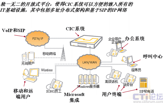 可以方便的與不同的第三方網(wǎng)絡設(shè)備,用戶終端等集成,預置的Microsoft插件使得CIC可以和Microsoft