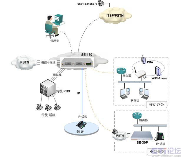 IP PBX即是專為中小企業(yè)量身設(shè)計(jì)的,其中典型產(chǎn)品為SE150。