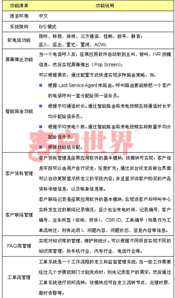 呼叫中心是企業(yè)和客戶互動(dòng)的溝通平臺(tái),要真正有效管理客戶服務(wù),優(yōu)化客戶服務(wù)處理流程,座席應(yīng)用軟件是呼叫中心建設(shè)的關(guān)鍵,座席應(yīng)用軟件與企業(yè)后臺(tái)各個(gè)業(yè)務(wù)系統(tǒng)有機(jī)結(jié)合,處理包括業(yè)務(wù)咨詢、信息查詢、投訴建議、業(yè)務(wù)受理等呼入業(yè)務(wù),以及客戶回訪、滿意度調(diào)查、電話營銷和派工等呼出業(yè)務(wù)。