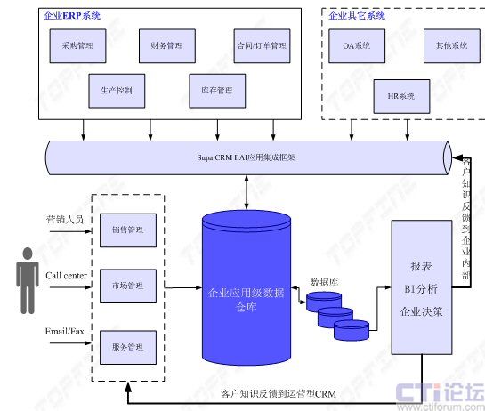 最后,隨著企業(yè)業(yè)務的不斷發(fā)展,應用系統(tǒng)的不斷擴展,必然會產(chǎn)生大量的客戶交易、服務、咨詢、市場反饋、滿意度調(diào)查等信息數(shù)據(jù);如何充分地利用這些數(shù)據(jù),將變得越來越重要。通過建立部署SUPA CRM,利用先進的數(shù)據(jù)倉庫和BI技術,對企業(yè)數(shù)據(jù)進行充分的挖掘和分析,從而快速了解: