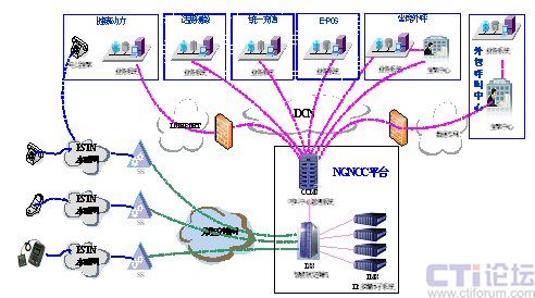 NGCC系統(tǒng)運行以SoftSwitch為基礎(chǔ),基于包交換技術(shù),話路的接入通過SoftSwitch匯接到NGCC系統(tǒng),其他的接入方式則通過相關(guān)的服務(wù)器(如短消息、即時消息服務(wù)器等)匯接到NGCC系統(tǒng);同時,NGCC也可通過上述接入手段將信息主動反饋給用戶,形成雙向溝通的渠道,實現(xiàn)呼叫中心系統(tǒng)的被動服務(wù)和主動服務(wù)兩個功能。