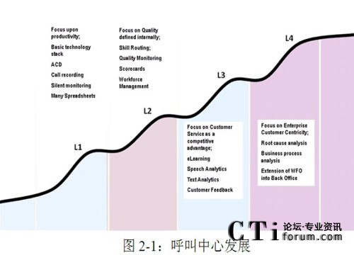 在現(xiàn)實中,還存在零程度的呼叫中心,這一點(diǎn)并沒有體現(xiàn)在呼叫中心發(fā)展路線圖上。零程度的呼叫中心就是那些在運(yùn)營過程中并沒有很好地認(rèn)識到自己角色以及對自己未來的發(fā)展毫無計劃的呼叫中心。