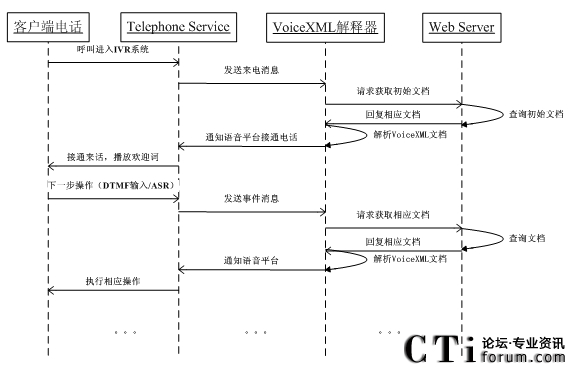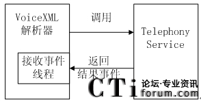 圖3.15 VoiceXML解析器與Telephony Service交互圖