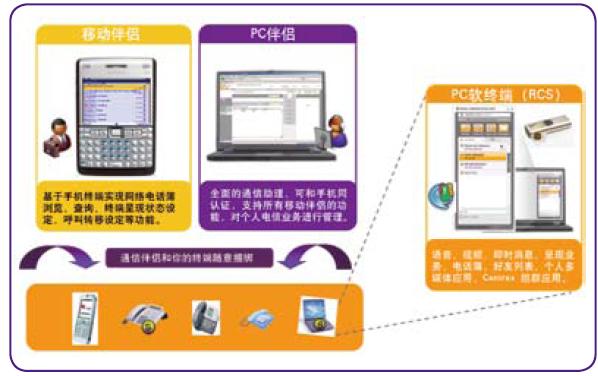 這些管理可以通過通信伴侶(移動(dòng)伴侶或PC伴侶)來完成。PC軟終端支持在PC機(jī)上實(shí)現(xiàn)Centrex,消息,電話本,在線狀態(tài),好友列表, 視頻通話等功能。