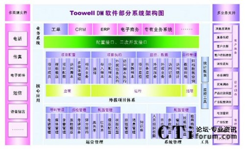 - Toowell DM 具備強大的業(yè)務(wù)整合能力,軟件框架基于呼叫中心全方位解決方案,支持訂單、投訴、業(yè)務(wù)開通、知識管理等。