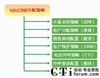 4、電話銷售—策略管理:通過完善的電銷過程的策略配置,以支持電話銷售全過程的管理操作。包括客戶動態(tài)和靜態(tài)分配策略、小量試呼策略、客戶保護(hù)策略、電話外呼策略和渠道配置管理等。系統(tǒng)提供呼出策略的編輯、加載、修改和實(shí)時激活等管理功能。