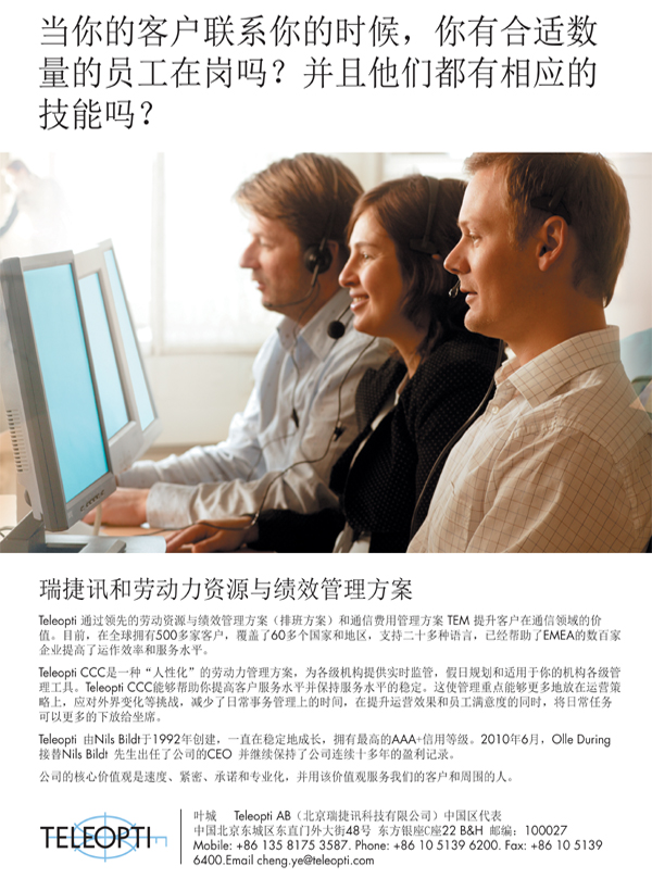 呼叫中心績效管理方案供應(yīng)商Teleopti獲最高信用評(píng)級(jí) 2011-12-07 |