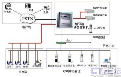 系統(tǒng)主要由 HXD09語音交換機、語音 / 傳真服務(wù)器、客服數(shù)據(jù)庫服務(wù)器、客服坐席、管理監(jiān)控終端組成,并通過 TCP/IP