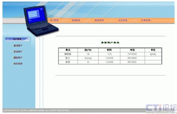 監(jiān)控功能:利用通話錄音、監(jiān)聽等手段,對服務(wù)質(zhì)量進行監(jiān)控,實現(xiàn)對服務(wù)員的考核。
