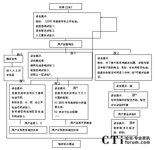 CTI論壇(ctiforum)07月10日消息: 12345政府熱線,是一個建立在開放的系統(tǒng)平臺之上,采用全中文、圖形化交互式的操作界面,提供開放的接口,能與其他信息、服務系統(tǒng)連接的系統(tǒng),該系統(tǒng)的設計開發(fā)具有先進性、安全可靠性、可擴充性、易用性、友好性等特點。通過政府12345熱線的工作人員在信息系統(tǒng)的平臺上以7X24小時方式運行工作。在該系統(tǒng)工程的設計上還要充分考慮項目實施后可能發(fā)生的突發(fā)性規(guī)模放大量,為未來的發(fā)展趨勢,預留足夠擴容空間,并考慮到由此可能造成的對系統(tǒng)架構(gòu)、技術實施方案、資源配置等所進行的相應改動,及如何提供開發(fā)工具去滿足不同時期的需要。