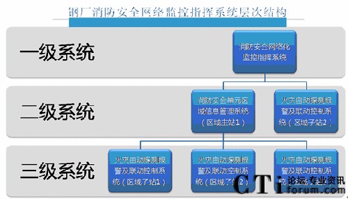 三級系統(tǒng)為“消防安全監(jiān)控指揮系統(tǒng)”,設(shè)在消防安全監(jiān)控指揮中心即新建廠區(qū)管控中心處,是新廠區(qū)的火災(zāi)等事故信息收集、匯總、處理的中心,其功能為:①自動獲取或通過火災(zāi)報警電話獲取二級系統(tǒng)的火災(zāi)信息(火災(zāi)發(fā)生的分廠名稱、具體工藝系統(tǒng)分區(qū)等),與二級系統(tǒng)進行實時信息交互,并對二級系統(tǒng)實施指揮調(diào)度;②與廠區(qū)內(nèi)外的消防及其它搶險救災(zāi)機構(gòu)(醫(yī)療、交通、電力等)互聯(lián)互動;③與全廠級生產(chǎn)信息管理中心進行信息交互和應(yīng)急聯(lián)動。