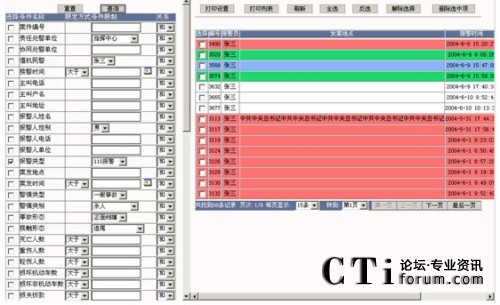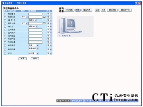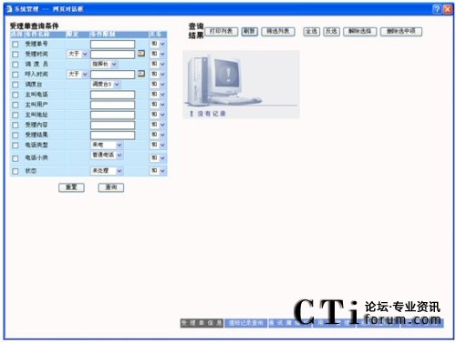 查詢:在要查詢的字段上打勾,輸入要查詢字段的信息及各條件間關(guān)系,點擊“查詢”按鈕,則在屏幕右側(cè)顯示相應(yīng)的查詢結(jié)果,可以對這些查詢結(jié)果進行維護,查詢條件可自由定制。