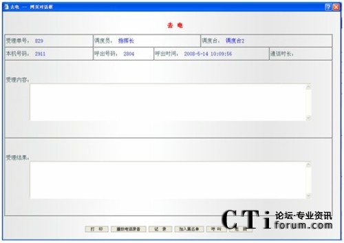 單擊某一記錄條,可彈開相應(yīng)的記錄單,記錄單分為三種:普通電話記錄單,未接電話記錄單和呼出電話記錄單。
