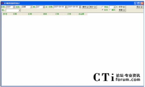 設(shè)定好相應(yīng)的時間,先點(diǎn)擊統(tǒng)計,再點(diǎn)擊查找即可顯示各個區(qū)域的總進(jìn)線、總訂單、總訂貨數(shù)及總金額。