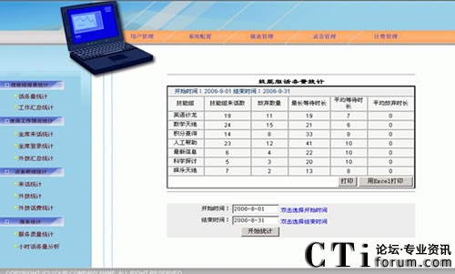 - 系統(tǒng)呼叫總數(shù)、系統(tǒng)接通總次數(shù)、工作量統(tǒng)計。