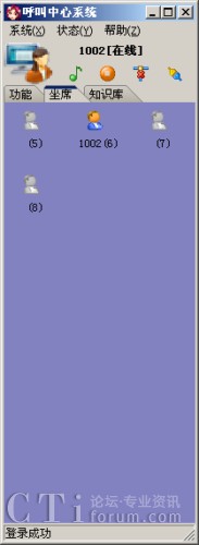 坐席系統(tǒng)提供普通坐席和班長(zhǎng)坐席功能。普通坐席完成通常話務(wù)處理所需的所有功能;具備班長(zhǎng)權(quán)限的話務(wù)員可進(jìn)入班長(zhǎng)坐席界面,除具有普通坐席的所有功能外,還具有監(jiān)控和管理坐席系統(tǒng)的各種功能。